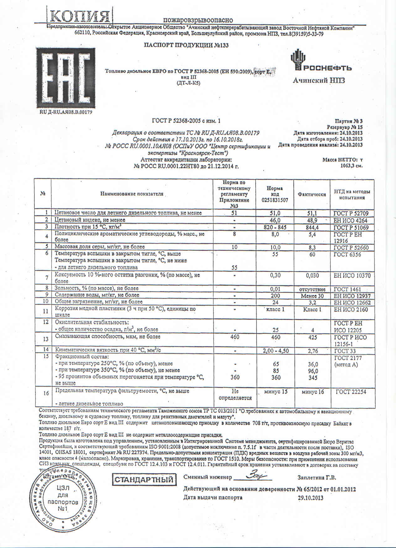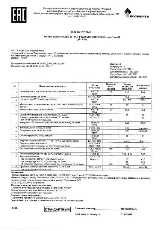 Дизельное топливо | солярка | паспорт качества